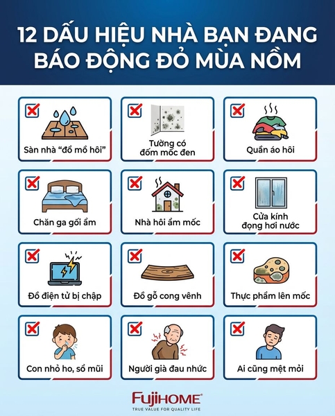 Hãy kiểm tra ngay 12 biểu hiện cảnh báo độ ẩm quá cao dưới đây. Nếu phát hiện từ 5 dấu hiệu trở lên, đã đến lúc bạn cần hành động ngay!