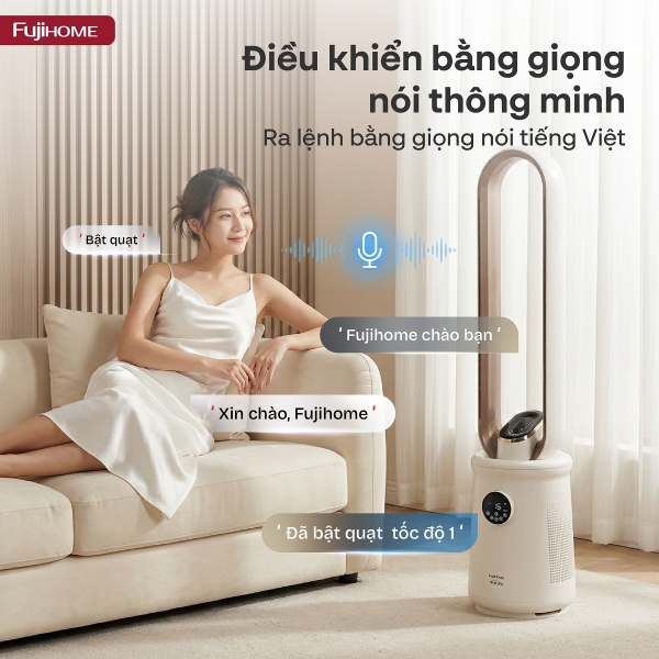 - Câu lệnh tự nhiên: Chỉ cần nói "Chào Fuji" kèm yêu cầu — điều chỉnh tốc độ gió, hẹn giờ, bật/tắt — phù hợp với người cao tuổi lẫn trẻ nhỏ mà không cần remote hay smartphone.
