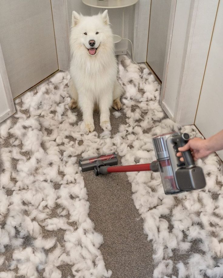 - Có thú cưng như chó, mèo: Cả robot hút bụi và máy hút bụi cầm tay đều có vai trò riêng. Tuy nhiên, lông thú thường bám vào thảm, ghế sofa và góc tường – những nơi mà máy hút bụi cầm tay với đầu hút mạnh tỏ ra vượt trội.